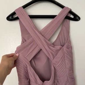 David's Bridal Quartz Long Mesh Criss Cross Back Bridesmaid Dress