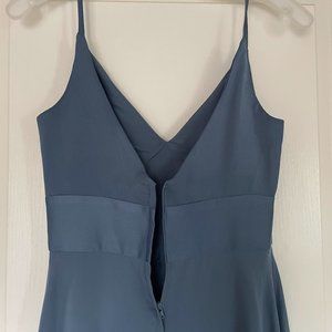 David's Bridal // Steele Blue Spaghetti Strap Satin Top Chiffon Bridesmaid Dress