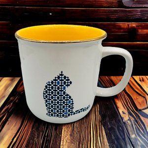 Introducing the Davids Tea Rustic Mosaic Cat Tea Coffee Ceramic Mug, a must-have for all cat lovers and tea enthusiasts! This exquisite mug features a stunning blue mosaic cat outline on a pristine white body, adding a touch of elegance to your tea or coffee time. The gold-rimmed design adds a luxurious feel, making every sip feel like a special occasion. And with its bright yellow interior, this mug brings sunshine to your morning routine, instantly uplifting your mood. Crafted with high-quality ceramic, it ensures durability and heat retention, keeping your beverage warm for longer. Treat yourself or surprise a loved one with this charming mug that combines style, functionality, and a love for feline companions.