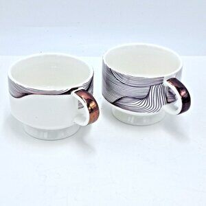 Davids Tea Geometric Wave Design Set of 2 Mugs Stackable Purple Waves Stemmed