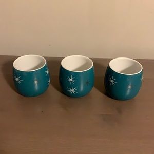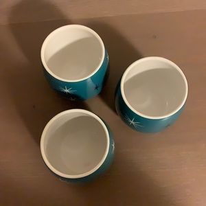 EUC David’s Tea teal ceramic mini cups with silver and white star design.
