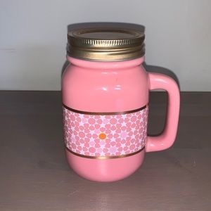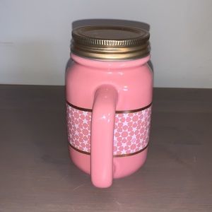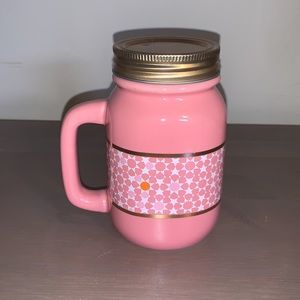 David’s Tea Pink, White, and Gold Ceramic Mason Jar Mug with Lid & Strainer