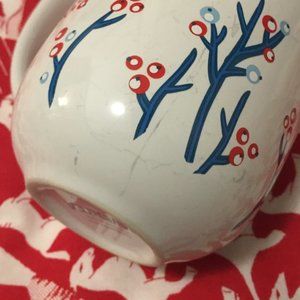 Good preowned condition, Nordic mug by David's Tea featuring a graphic of a song bird and foliage. Includes a matching top and their signature steeper. Very cute. This is a retired design from around 2014 or so, I believe. Made with better materials than the new ones from what I've heard. There is some overall wear, but no chips or cracks (please see photos for close ups). Cute folksy European design sold around Christmas. I might still have the box lying around. I'll have to check.