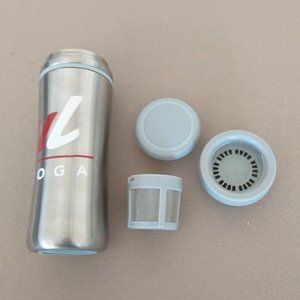 Wellness self-care kit - great for hydration and dealing with sore muscles after that yoga, spin, gym workout! David's Tea Soul Spin Yoga edition drink (fruit) infuser water bottle (7" tall) was used only a few times for water (purchased at Soul Yoga as I forgot to bring a water bottle to class that day), never used for infusion - see 4th and 7th pics for the brand new, never used infuser attachments. Only signs of wear are from washing the outside of the bottle - see last pic where red line is slightly off, only noticeable if looking up close.