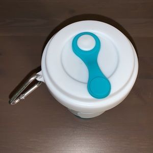 New with tag David’s Tea teal and white collapsible silicone cup with carabiner.