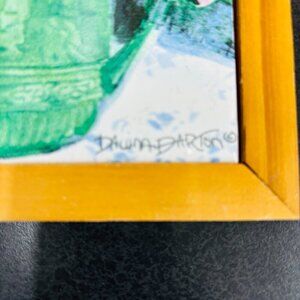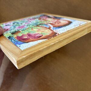 Dawna Barton 1992 Vandor Wooden Framed Art Tile Watercolor Floral Planter Jug