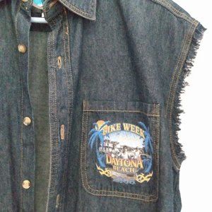 Super light jean vest, from Daytona Beach 2008, excellent condition, Only one available size small but would fit sm/m.