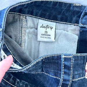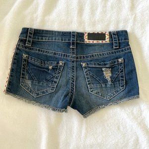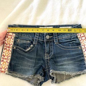 Super cute Daytrip denim jean shorts with aztec accents on sides.