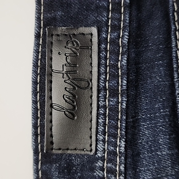 Excellent pre-owned condition, Daytrip Women's Virgo Bootcut in a dark blue demin jeans in faded with gold stitching and bejeweled detailing, size 28XL.