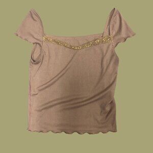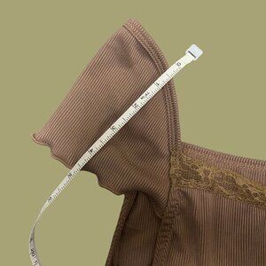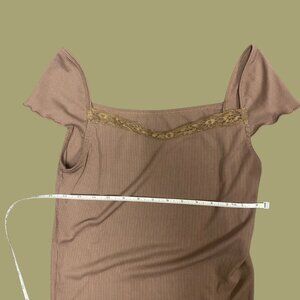 ✨ Dazy Brown Ribbed Lace Trim Cap Sleeve Top – Size XL ✨