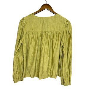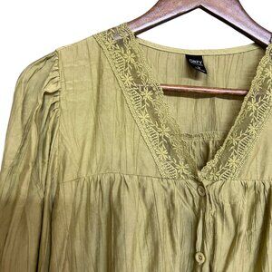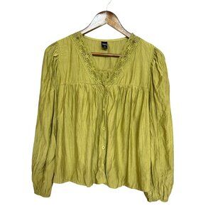 Dazy Button Front Lacy Neck Detailing Puffy Long Sleeve Babydoll Blouse Size XL