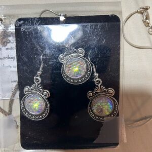 New handcrafted necklace and earrings- iridescent mermaid like scales with a Tibetan metal look around outside - 18” chain