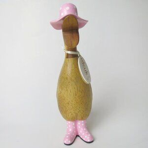 Dcuk The Duck Company Wooden Duck Pink Spotted Hat & Welly Boots