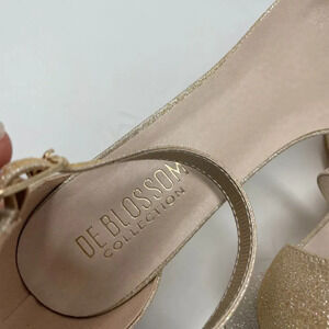De Blossom Ankle Strap Low Heel Sparkle Wedding Event Shoe Gold Size 9