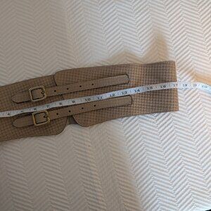 De Lonti belt, Italian leather belt, double buckle waist belt, taupe textured belt, size M-L belt, genuine leather accessory, vintage style belt, statement belt, Mississauga closet, Medium Belt, Large Belt, Obi belt, Corset belt, wide belt, minimalist, Boho, bohemian, Neutral