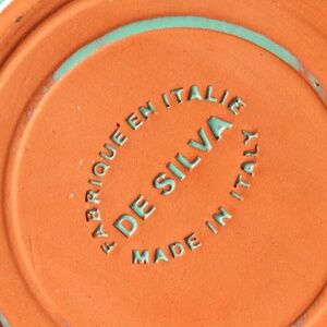 Gorgeous De Silva Terracotta glazed ceramic small casserole dish. Turquoise and terracotta color and approx. diameter = 6". Microwave/dishwasher safe and heat resistant to about 500 degrees in oven - perfect for baking or cooking smaller dishes. Pre-owned but I've never used and so in mint condition - no chip, cracks or stains. Smoke-free, pet friendly home!