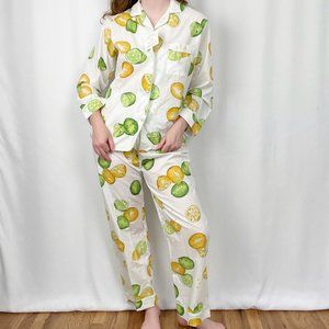 Deadstock Vintage Novelty Citrus Print Matching Pajama Shirt & Long Pants PJ Set