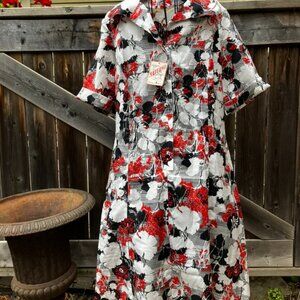 Red, white, and black shirtdress with original tags. Rare deadstock 1960s dress.