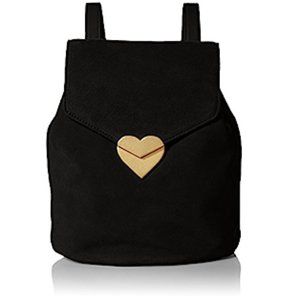 Dear Drew Black Suede Backpack with Gold Heart Closure