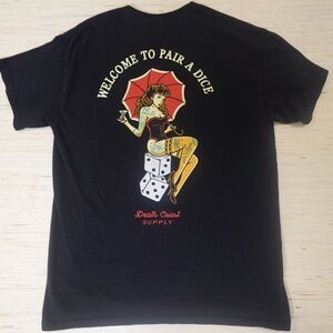 Death Coast Supply Graphic T-Shirt Men’s Medium – Pin-Up Girl Dice Print Black
