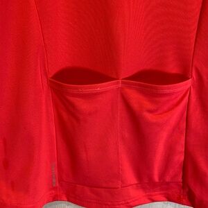 Haut de sport confortable et léger de la marque Decathlon, conçu pour l’activité physique. Il est muni de poches à l’arrière, parfaites pour transporter de petits essentiels lors de l’entraînement, de la course ou du vélo. Sa couleur vive, entre le rouge néon et l’orangé, assure une bonne visibilité et un style dynamique.