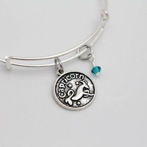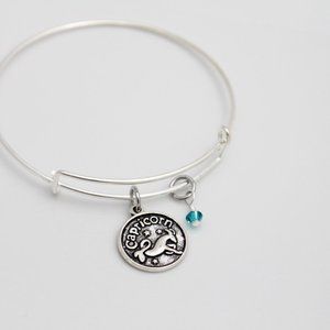 December Capricorn Adjustable Charm Bangle - Handmade Zodiac Bracelet
