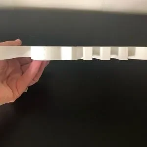 Love your home with this precious white wood decor piece. Stands upright and measures 8.5 inches wide x 4.5 inches tall (at tallest point). This would look great on a bookshelf, tray or wherever you need a little special touch! In perfect condition with no scratches or marks.