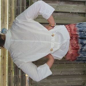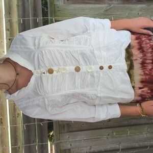 Dress it up for a formal occasion or dress it down with a nice pair of jeans. This funky vintage blouse is giving slightly pirate vibes. Ruched in the front, with decorative accents all over at the back, front and sleeves. This is a definite Statement Piece.