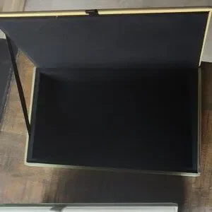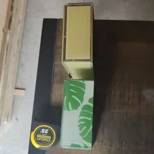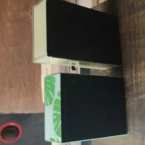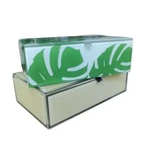 Set of two decorative boxes. Features a green leaf design and a cream base.