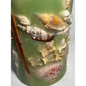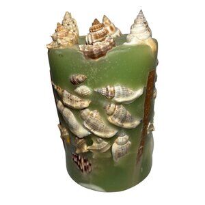 Decorative Green Seashell Pillar Candle Embedded Nautical Shell Design Dynan INC