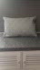 Decorative throw pillow cover with inside pillow. Grey in colour with triangular textured design. Approximate size is 18" x 12".