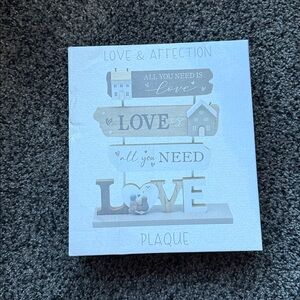 Charming decorative sign set with 'Love' theme. Features multiple signs with heart and house motifs. Perfect for home decor.