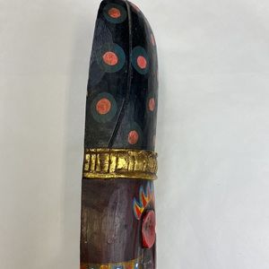 A multicoloured wall mask. Believe it is a wood, hand carved mask. Excellent Condition.
