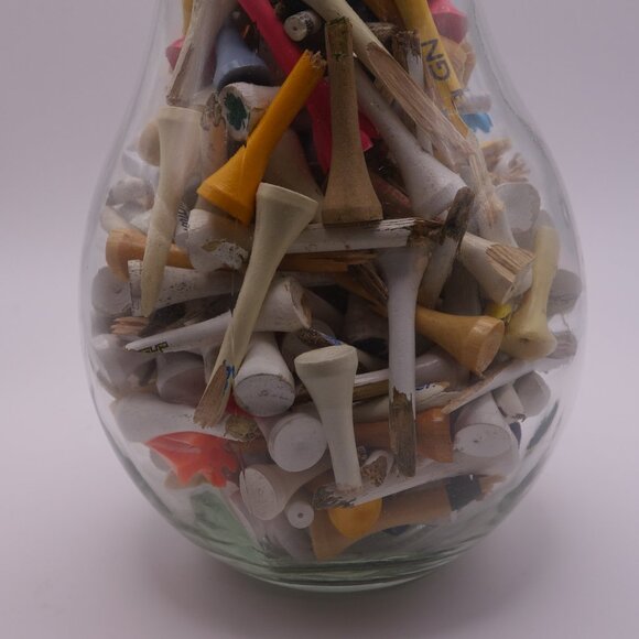 Decorative Standing Light Bulb filled with Broken Golf Tees