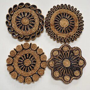 Set of 4 vintage woven straw hot pad trivets for the kitchen! Beautiful 1970s designs!