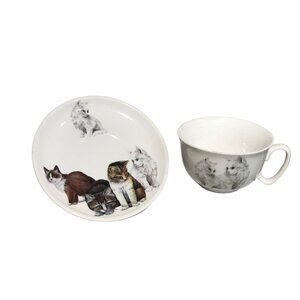 This charming set features a bowl and mug adorned with lifelike cat illustrations. Its ceramic construction ensures durability for regular use. An elegant addition to any cat lover's collection, it combines functionality with aesthetic appeal.