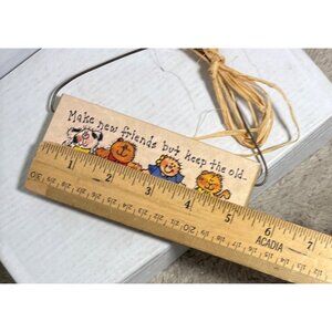 Decorative Wooden Plaque Make New Friends With Wire Hanger & Straw Bow 5"