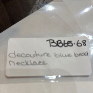 Elegant necklace featuring blue beads vibrant purple detailing. Perfect for adding a pop of coloru to any outfit.