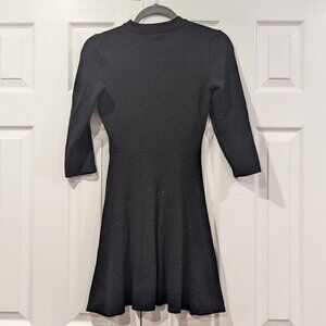 Decree knit dress, mock neck, 3/4 sleeves, circle skirt, black, size small