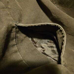 Not worn down,, in great shape, not worn a lot, plaid inside, well made, authentic, snap button down, button under pockets, 1 button missing (never noticed as i never used them)