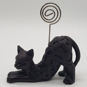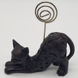 Deep Brown Resin Scroll Design Stretching Cat Swirl Wire Card Photo Holder