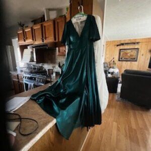 Deep Green Satin Gown for Weddings or Bridesmaids