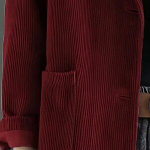 Deep Red Corduroy Buttoned Blazer Jacket With Pockets