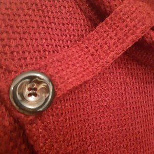 Deep Red Cowl Neck Asymmetrical Button Open Hemmed Sweater
