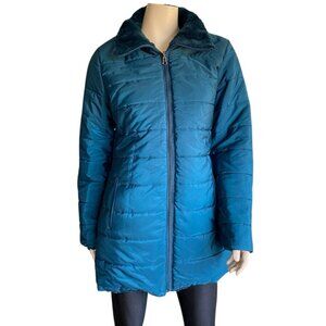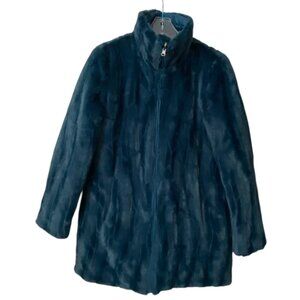Rich Teal Green Reversible Super Soft Faux Fur Jacket Sz M/8. Great for fall/early winter. No Tags or size but fits sz 8 perfectly. Mannequin is 5ft 9" Sz 6-8. Zipper closure, side pockets. Some of my photos look teal blue but is a deep teal green. Measurements lying flat, Pit to pit: 22"/Sleeves: 25" / Length from shoulder down: 31". In excellent preowned condition, No flaws, clean inside & out, scent free.