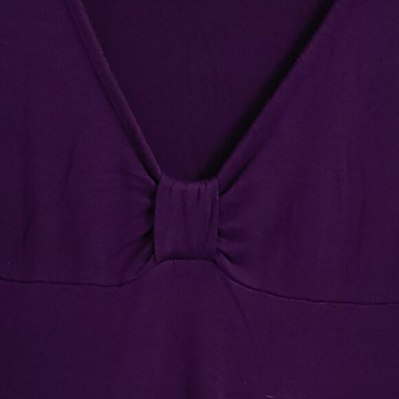 A rarely worn, dark purple top with a wide band at the bottom, and a deep vee tapering to a square.