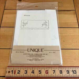 New in package vintage pre-printed fabric has a cute deer fawn design at each end of the table runner/dresser scarf. Fabric edges are finished. Suitable for hand embroidery, liquid embroidery, etc.. Fabric size is 12" x 36" (30cm x 91cm), Fawn print is approx. 6 1/2" tall. New/unopened package.