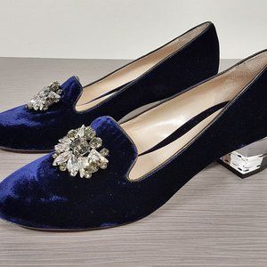 Deimille Della Pia Crystal Embellished Pump Royal Blue Velvet Womens Size 10 /40