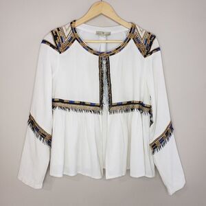 Del Lago Medium NWT Beige Long Sleeve Boho Beaded Embroidered Cropped Jacket