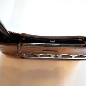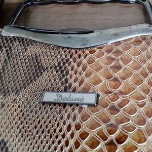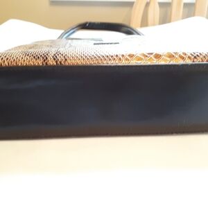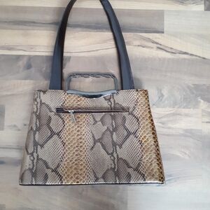 Gorgeous Snake print shoulder bag. Great condition. Some minor marks in metal details. Not as noticable as picture shows. Measures 8.5" x 12.5". Has zippered pocket on back as well as separate zippered pocket on inside and a divided zippered section.